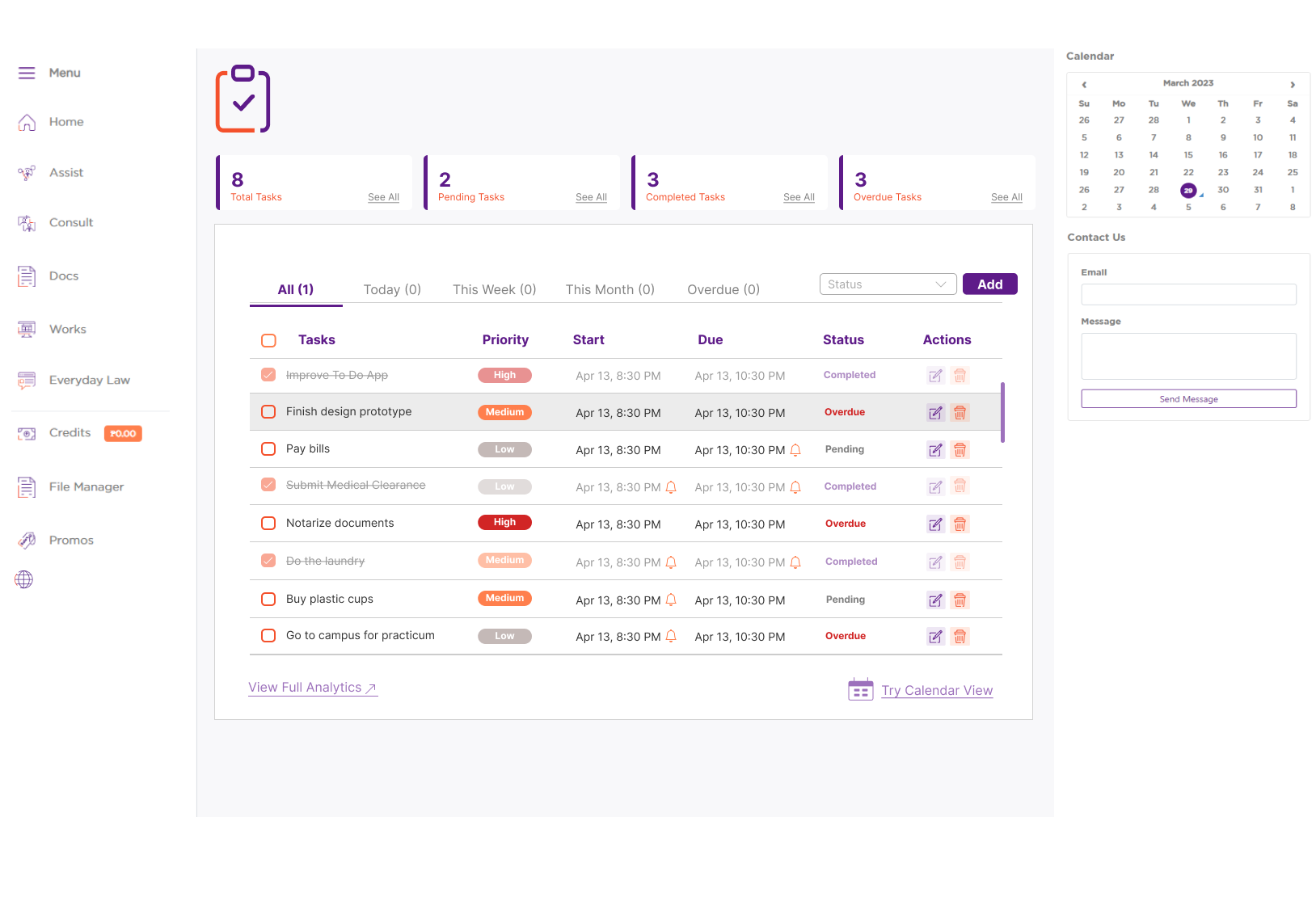 Calendar and task-tracking component for LexMeet, a platform making legal services accessible in the Philippines.
